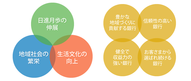 当行は、「地域の繁栄なくして銀行の発展なく、銀行の発展なくして地域への奉仕なし」をモットーとしております。