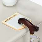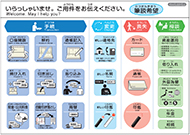 様々なお客さまが快適に店頭サービスをご利用いただくためのサポートツールとして、杖ホルダーや音声拡張器、老眼鏡セットのほか、文字や取引が図で記載されたコミュニケーションボード(日本語版、外国語版)を備え置きしております。