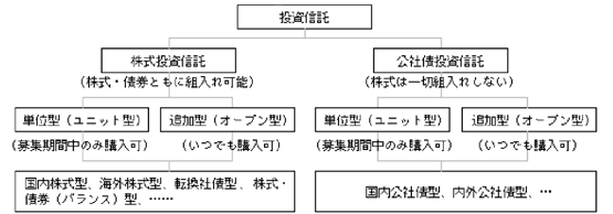 ※株式投資信託/公社債投資信託…組み入れできる対象による分類