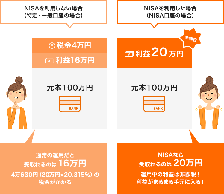 一方、NISAを活用すれば、この税金を支払う必要がなくなり、20万円まるまる受取ることができます。