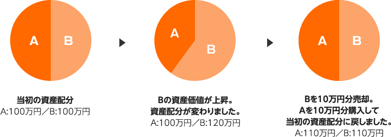保有する投資信託のなかで保有比率の膨らんだ投資信託を売却し、比率の縮んだ投資信託を購入して運用資産内でリバランスする方法です。