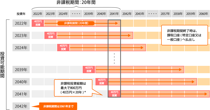非課税期間は20年間、年間40万円まで投資可能