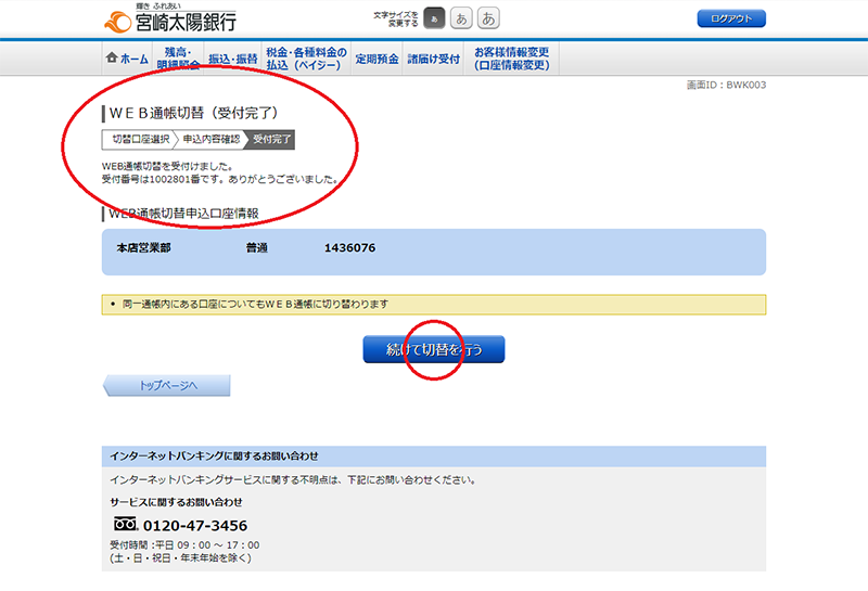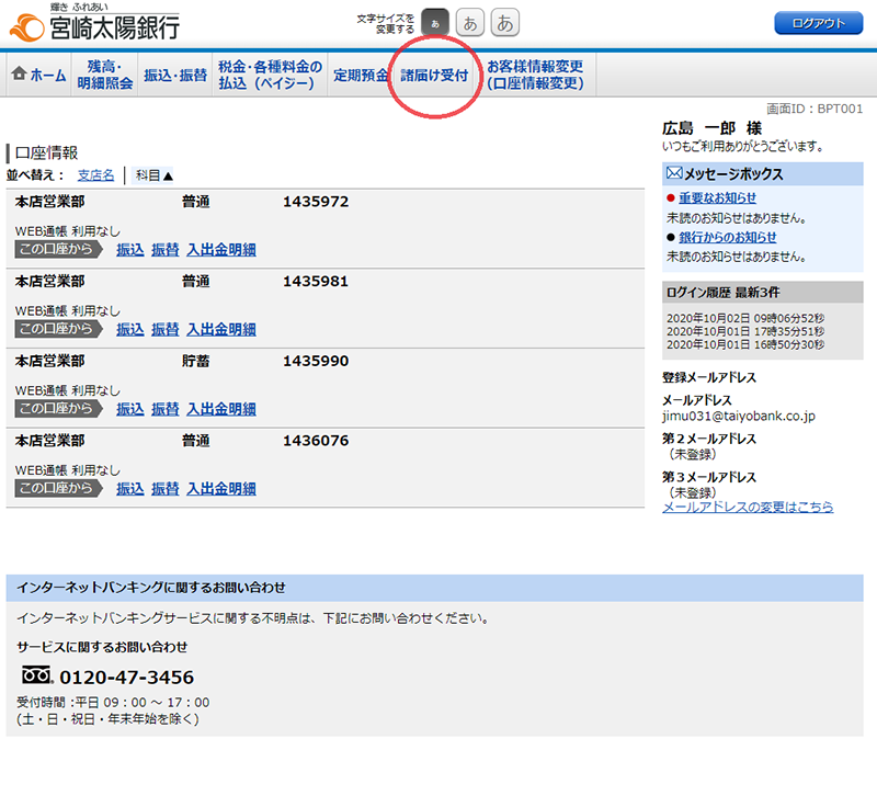 宮崎太陽ダイレクトを契約中で、普通預金口座・貯蓄預金口座を代表口座または関連口座へ登録しており、キャッシュカードを発行されているお客さま。