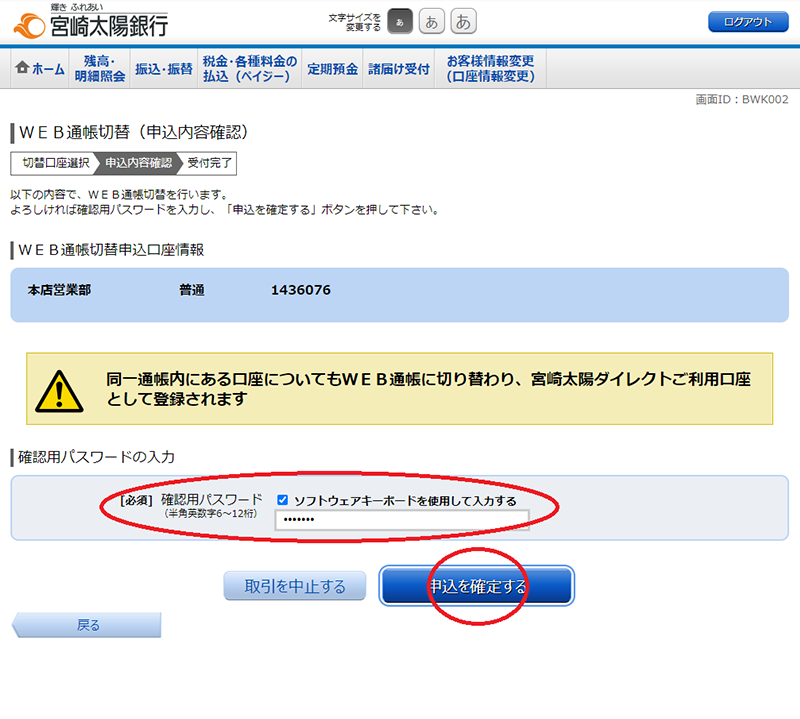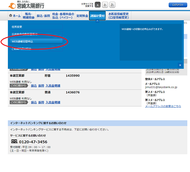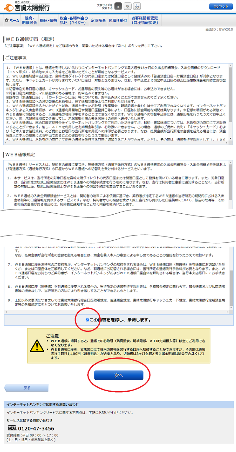 紙の通帳(有通帳)に代わり宮崎太陽ダイレクト※で残高や入出金明細をご確認いただけるサービスです。※個人向けインターネットバンキングサービス