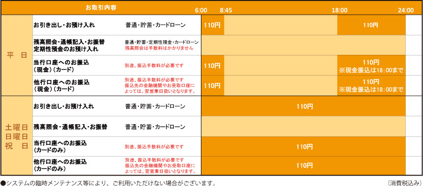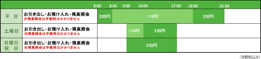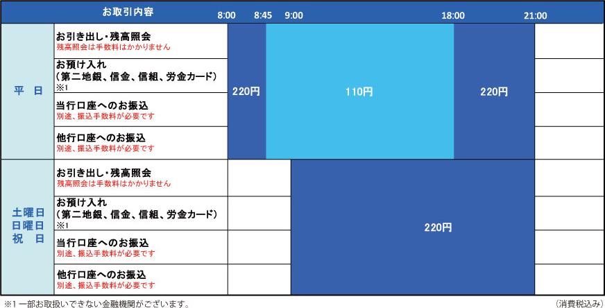 - 上記のご利用手数料は時間外手数料を表示しています。